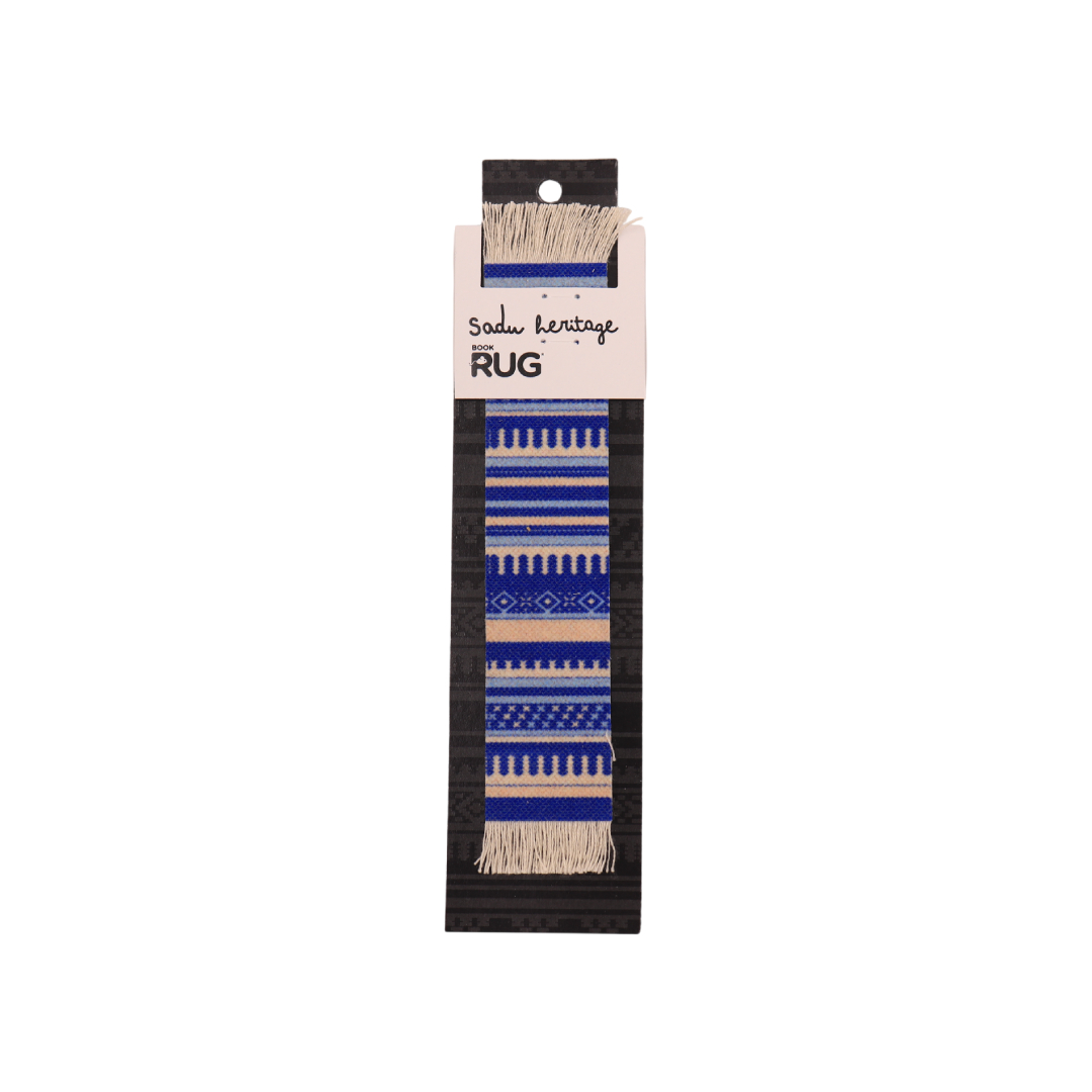 Heritage Art, Refined in Blue. Mark your place with the elegance of the Sadu Heritage Book Rug. Featuring high-quality woven textile and authentic geometric Bedouin motifs in shades of blue and sand, this durable, non-slip bookmark is the perfect cultural accessory for any library.