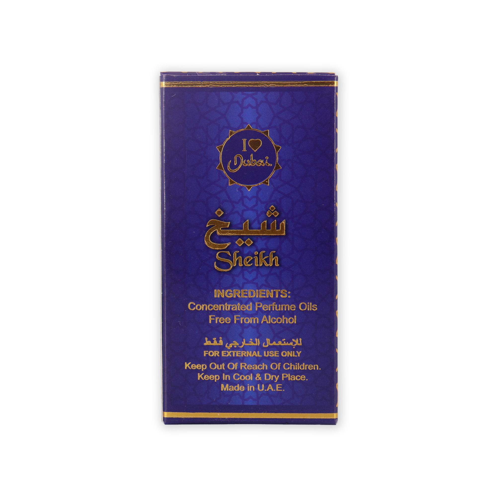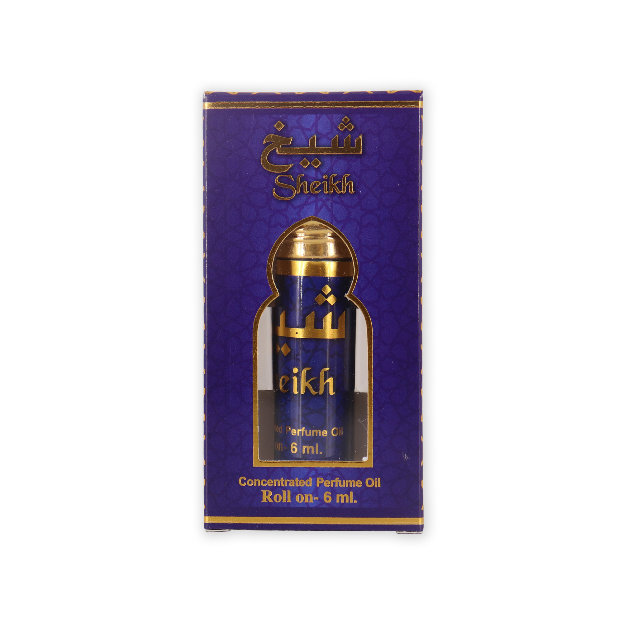 A premium 6ml concentrated perfume oil featuring the traditional Sheikh scent. This long-lasting, alcohol-free fragrance comes in a convenient roll-on bottle and is presented in an elegant blue and gold patterned gift box.